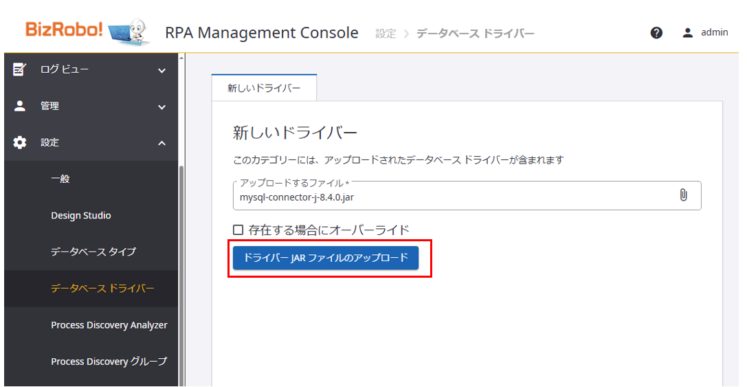 MCからMySQLにアクセスするためのJDBCドライバをアップロードします。