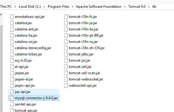 「mysql-connector-java-8.0.22.jar」ファイルをコピーします。 -